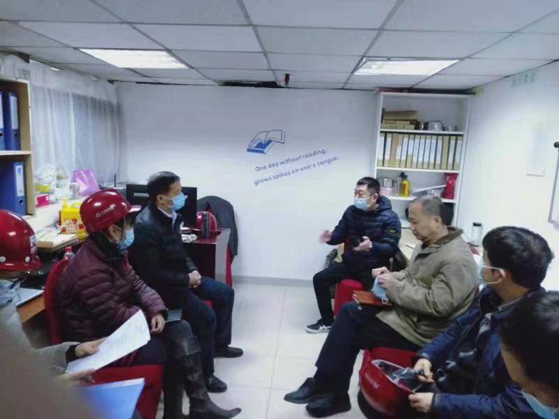 房地檢查組成員就現場(chǎng)安全防護、消防保衛、揚塵治理和勞務(wù)費支付等工作進(jìn)行了檢查指導。兩個(gè)項目的負責人分別詳細匯報了項目工程概況、施工進(jìn)度、勞務(wù)人員管理等情況。劉樹(shù)人同志對兩個(gè)項目的施工工作予以肯定,對項目人員進(jìn)行了親切問(wèn)候,并對復工項目提出幾點(diǎn)要求:一是疫情防控常態(tài)化,要加強防控力度,施工人員要及時(shí)接種疫苗;二是要重視宣傳工作,施工統一形象和標識工作要加強,要規范統一,提高修一整體形象。在查看了文物建筑樹(shù)根樁基礎加固施工后,對東堂子胡同項目提出要注意留存工法、工藝的視頻影像資料。對寶辰飯店項目提出希望公司及時(shí)對酒店裝修施工總結經(jīng)驗。